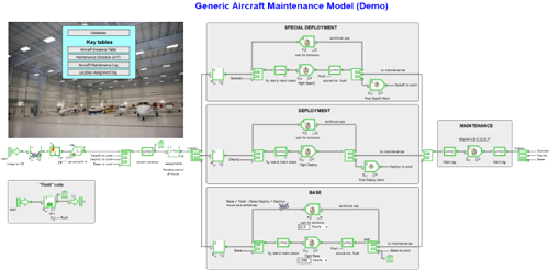 Have a look at this Aircraft Fleet Maintenance Model built using ExtendSim.