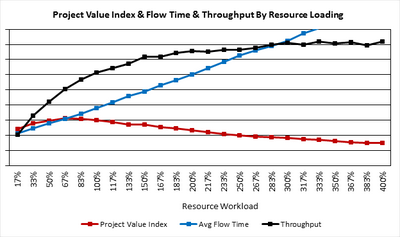 It is very difficult to correctly determine the appropriate workload that should be placed upon resources in this environment. There is no question that putting too little work into the system will tend to starve key resources. And while there is pressure to keep resources busy, overloading them usually results in unfavorable outcomes like projects taking too long.